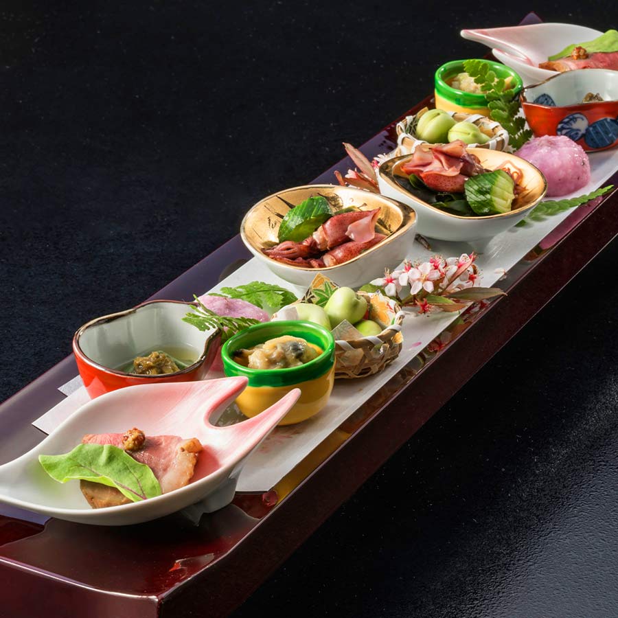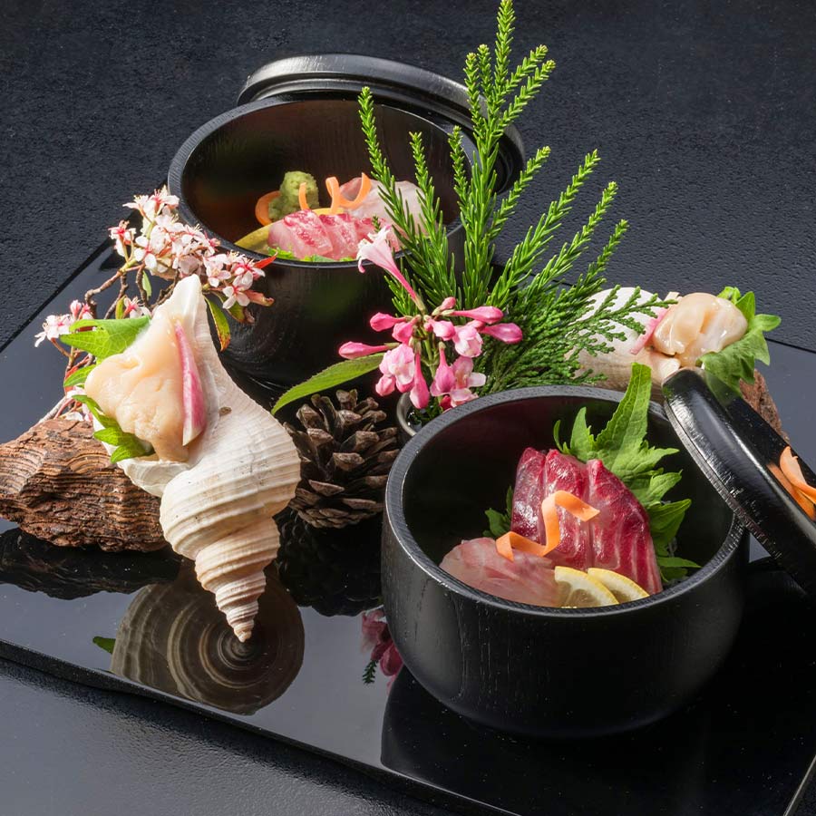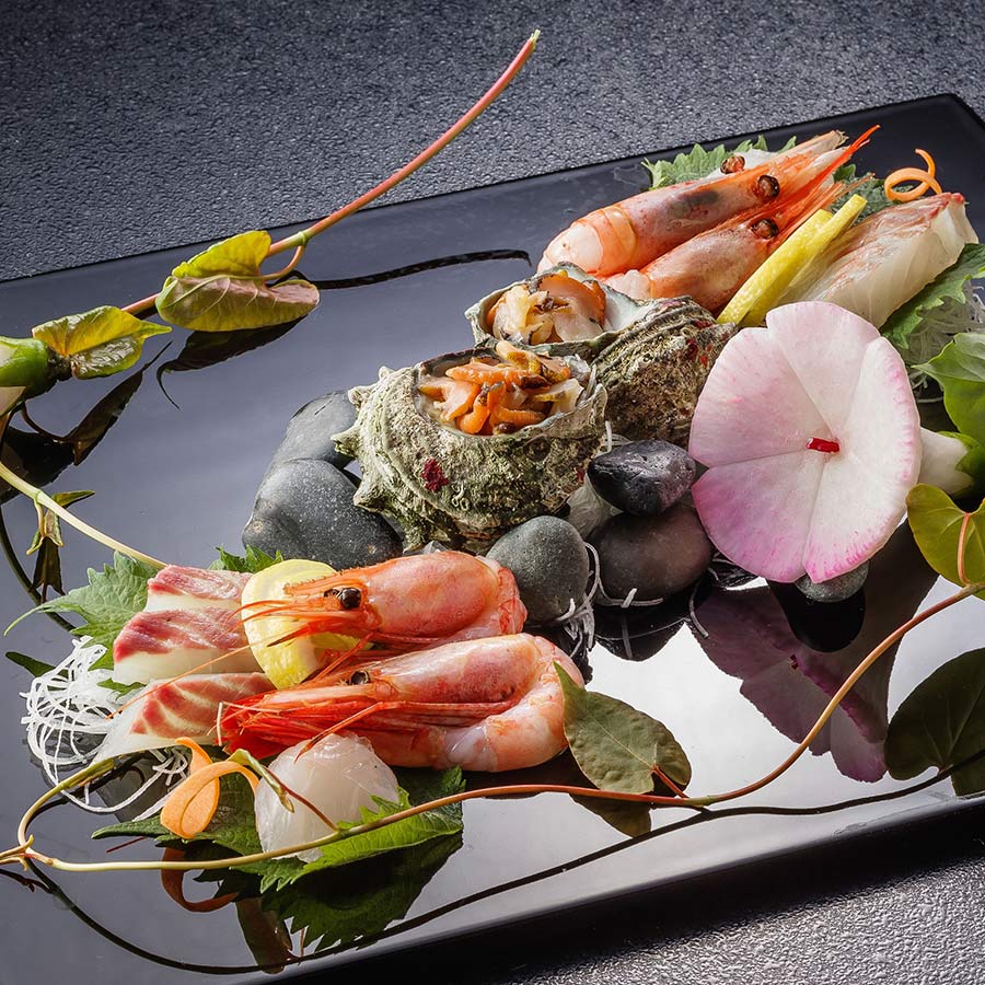 近海でとれた新鮮な海の幸を主役に黒毛和牛や、